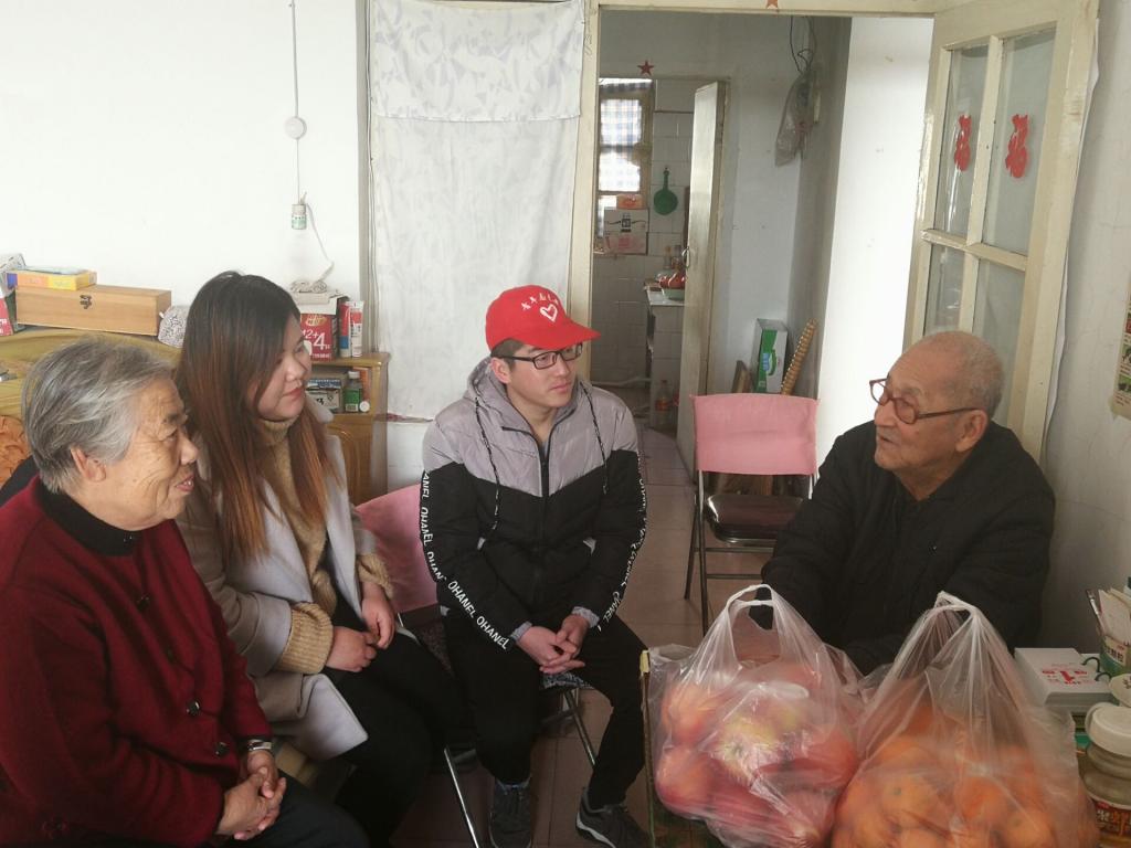 年事已高的陈老师见到青年学生来家里看望他感到非常高兴。一进门,同学们便主动向陈老师问新年好,嘘寒问暖表达了对老教师的良好祝愿,敬意和关心,送上了新年节日的礼物。