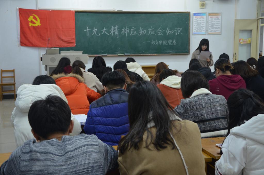 为进一步学习十九大精神,深入贯彻党的新时代路线、方针政策,教育学院党委开展了“十九大精神应知应会知识”党员集中答题与学习。