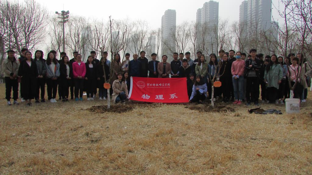 2018年4月2日下午,物理系开展了以“勉励青春四年,共植美好未来”为主题的毕业植树留念活动,系党政领导、学生工作人员及100余名毕业生参加了此次活动。活动中,物理系党总支负责人发表毕业生寄语,并与毕业生一起种下象征“游子思乡”的海棠树。最后,毕业生在宣传板上签名留念。