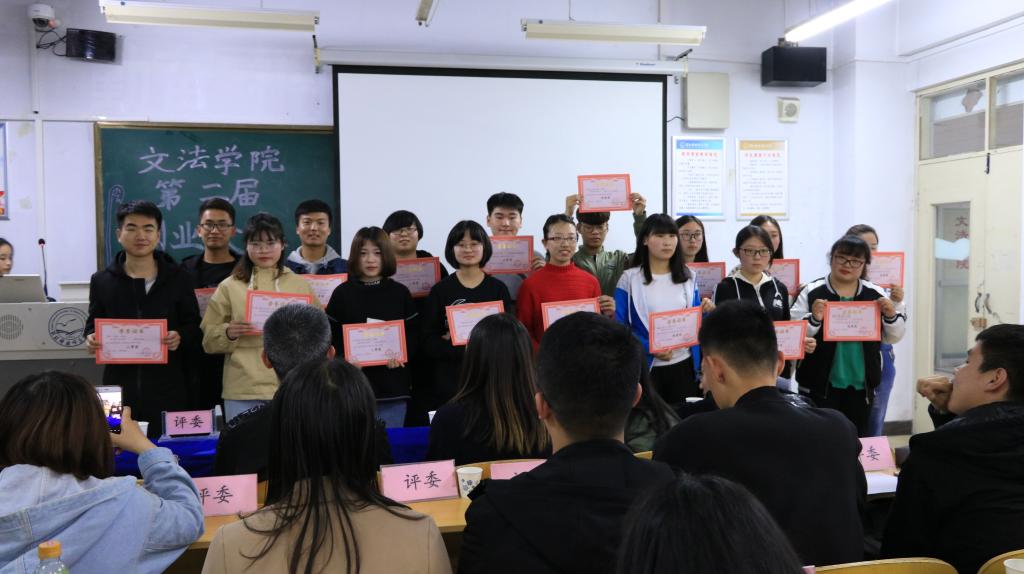 2018年4月17日晚,文法学院第二届创业大赛拉开序幕。学工办负责老师出席了此次大赛,各专业班长和学院就业部全体成员担任大赛评委。