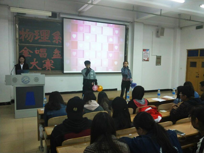 4月18日晚,物理系举办“心乐沉符”金唱盘歌手大赛。团委老师及200名学生参加了此次比赛。