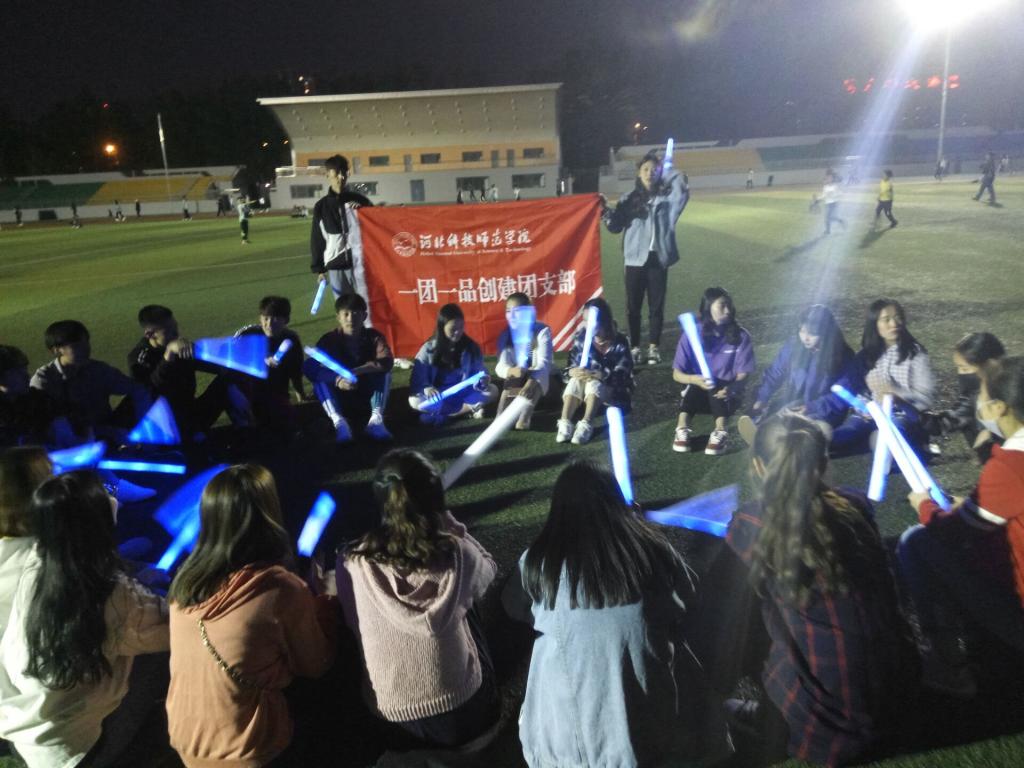 “荧光夜跑”活动是“舞梦青春”一团一品团支部特色三走活动,也是一个持久型的活动。活动开始,同学们佩戴着提前准备好的荧光棒,在操场上进行积极有序的夜跑活动,整齐的队伍和五彩的荧光棒,吸引了操场上其他同学的加入,跑步结束后,由团干部带领全体同学在操场上进行踢毽子等其他运动项目,活动气氛非常活跃。