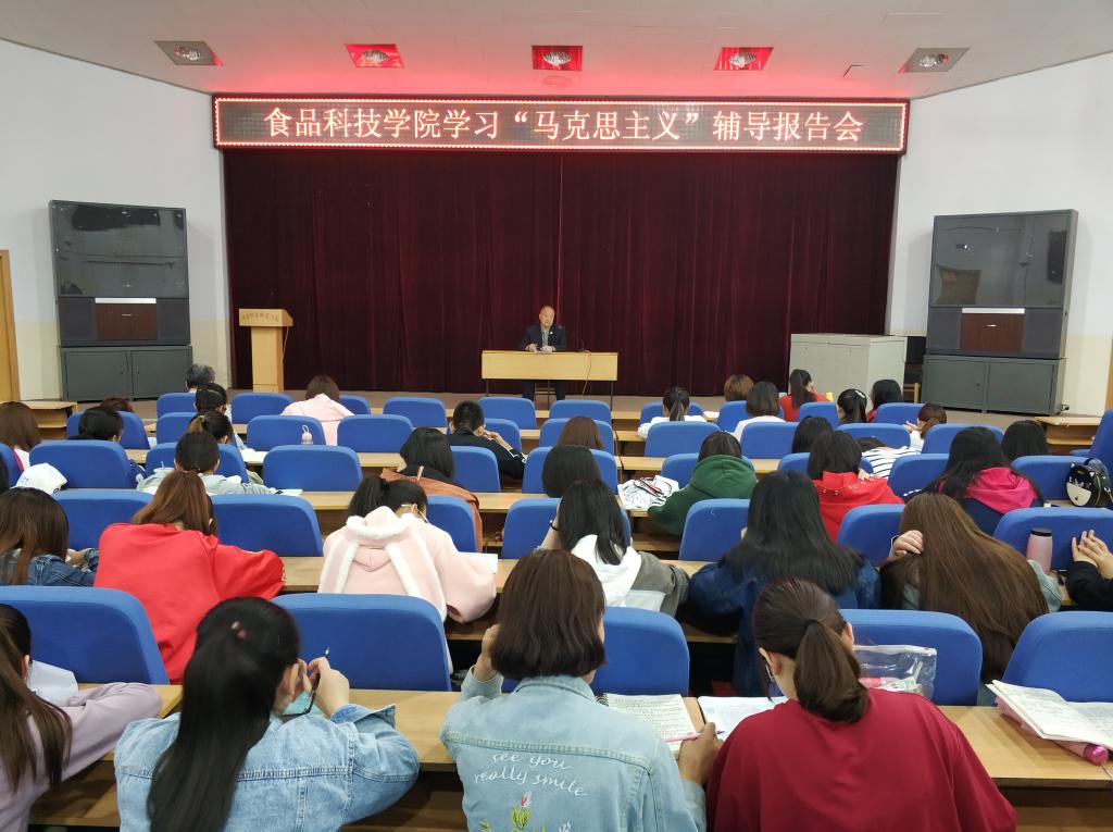 为深刻理解马克思主义,学习贯彻十九大精神,掌握习近平新时代中国特色社会主义思想的丰富内涵和精神实质,5月12日上午9:00,食品科技学院在学术报告厅举办学习“马克思主义”辅导报告会。全院学生党员、入党积极分子和班团干部参加了报告会。