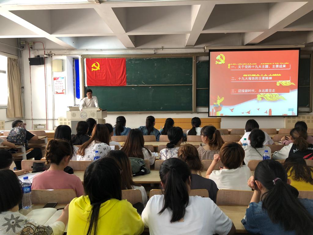 学院党委负责人以《放飞青春梦想,书写时代华章》为题,结合自身学习十九大会议精神的感悟和体会,从半岛网页版界面党的十九大主题、主要成果;十九大报告的主要精神;迎接新时代、永远跟党走等三个主要方面,面向青年学生对十九大精神和核心要义进行了宣讲、解读和阐释。