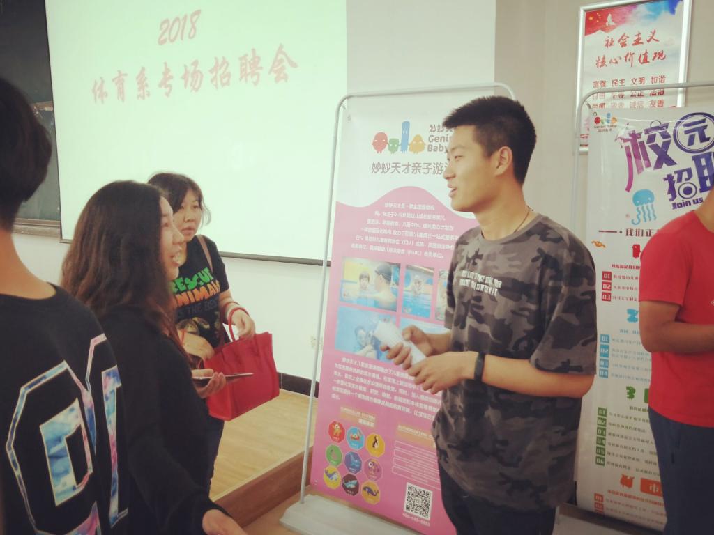 近日,体育系在秦皇岛校区逸夫楼B-104举办了“体育系专场招聘会”,共有北京阳光健身、北京锐健身、北京华体登临体育场馆管理有限公司、北京动因体育、天津妙妙天才亲自游泳俱乐部、唐山英华外国语小学、秦皇岛左右家儿童会馆、秦皇岛菲特尼斯等8家单位前来招聘,体育教育专业、运动康复专业和体育保健专业学生参加了招聘。