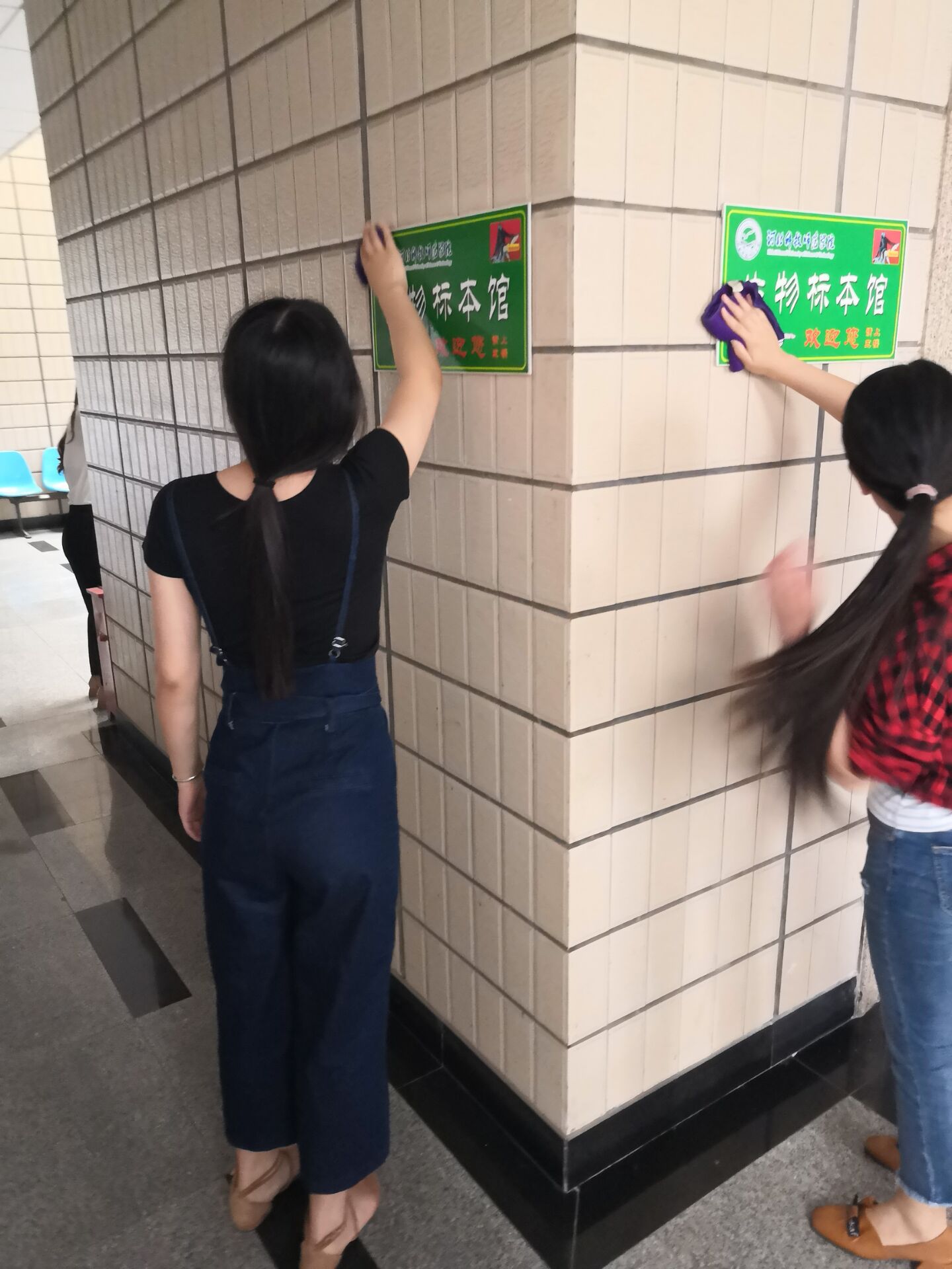 生科生技专业学生党支部毕业生党员在生物标本馆开展了环境整理和卫生清洁工作,为母校做好事,以实实在在的行动和良好的精神状态告别母校。他们认真擦拭了生物标本、墙壁上名人画像、科普宣传展板和达尔文雕像,对楼层走廊的环境设施进行了彻底的清洁整理。
