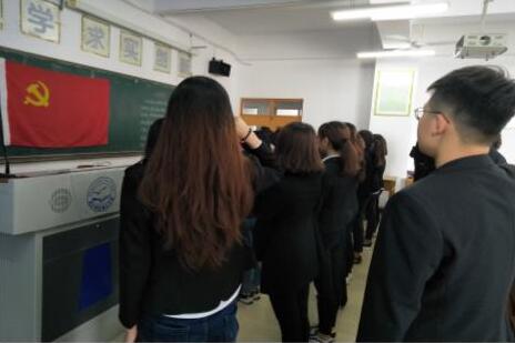 2018年6月13日,工商管理学院人力资源管理党支部开展了“筑梦起航,永褒党性初心”主题教育活动,组织25名党员在逸夫楼A601重温入党誓词。