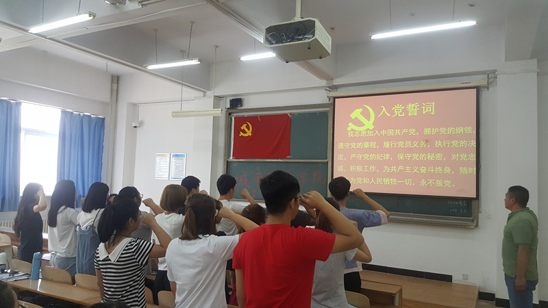 2018年7月6日,城市建设学院学生第四党支部开展了“听党课,宣誓词,不忘初心,跟党走”主题活动,学生第四党支部全体党员、积极分子在党旗下召开支部大会,同时接收19名同学为中共预备党员。