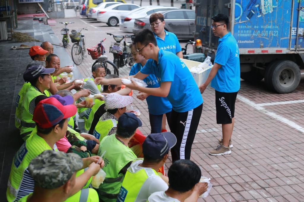 志愿者们为环卫工人奉献暖心早餐