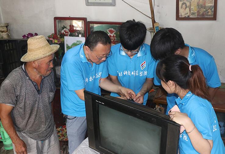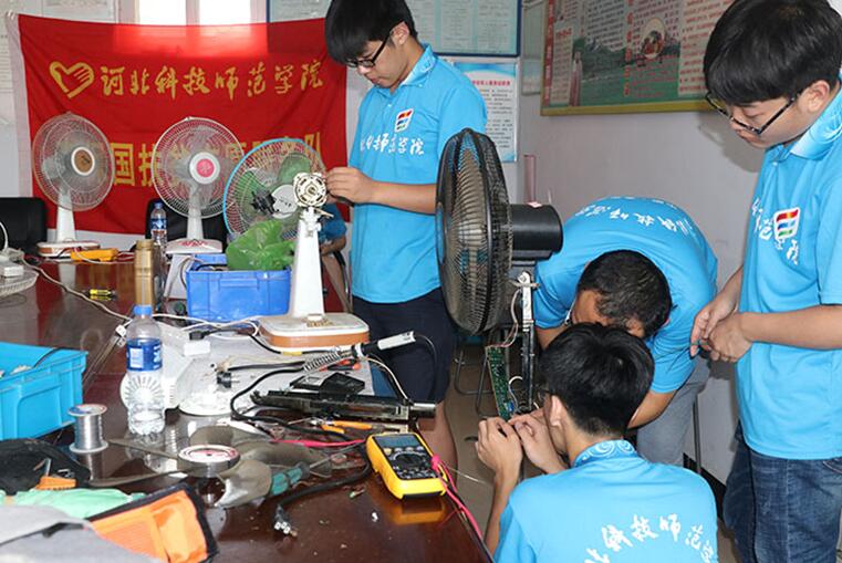 为深入学习贯彻习近平新时代中国特色社会主义思想和党的十九大精神,引领教育广大青年学生勇做担当民族复兴大任的时代新人,以实际行动助力精准扶贫,服务乡村振兴战略,切实在感受改革开放40年取得的新成就新面貌的生动实践中受教育、长才干、做贡献,根据上级文件精神,结合半岛online(中国)实际,机电工程学院特派出以“扶贫青春行,振兴中国梦”为主题的社会实践队到达后钱庄、马坨店、六合上城以及五峰山村进行为期一周的家电维修实践活动。