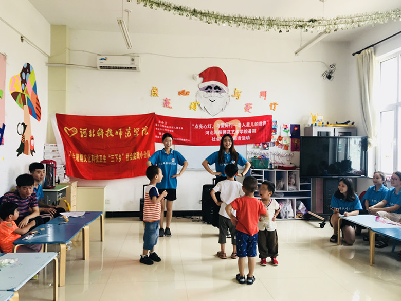 在活动接近尾声的日子,志愿者与孩子们举办了一次“点亮心灯,与爱同行——走近星儿的世界”主题茶话会,小朋友们和志愿者一起表演了许多精彩节目,整间教室在孩子们的嬉戏奔跑中洋溢着欢乐的氛围。在轻松愉快的氛围中,为孩子们提供了一个展示自我的平台,孩子们有了交流沟通意识,提高了表达、合作能力。