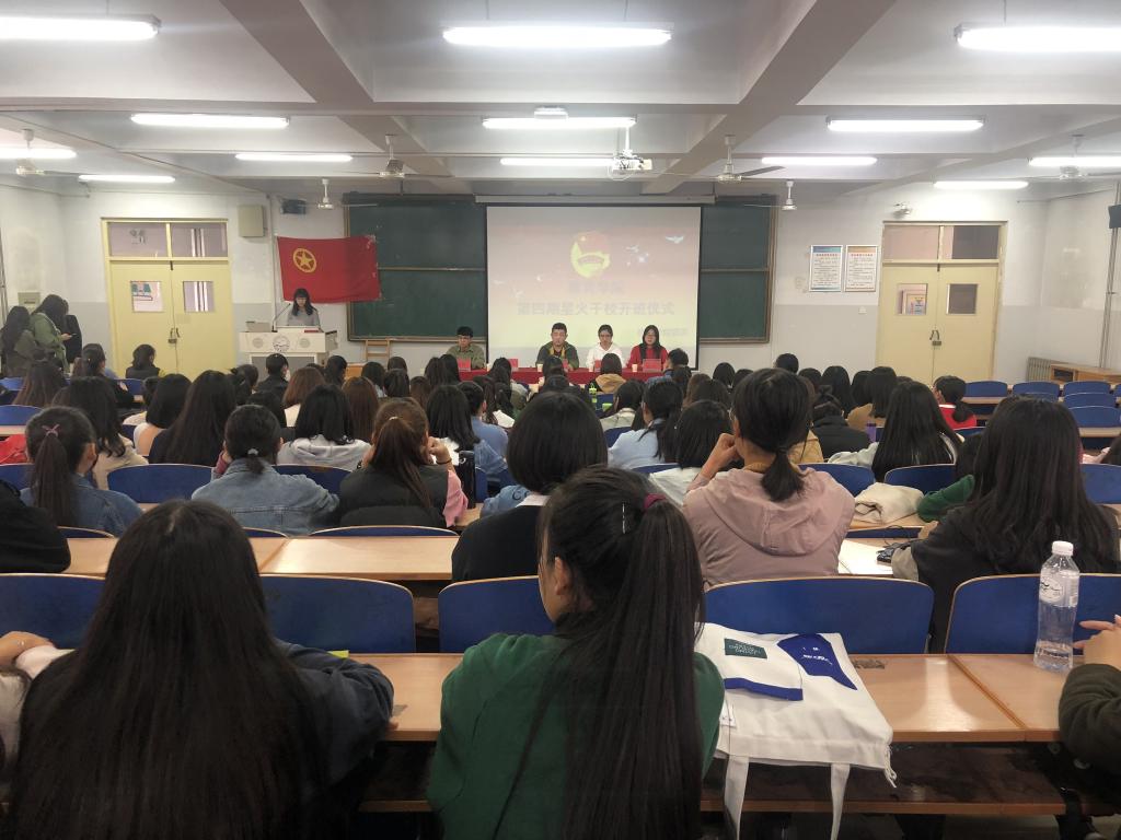 仪式开始后,全体起立、出旗、唱国歌。主持人概述了“星火”干校的由来及名称意义。团委负责同志为"星火"干校第四期培训班致辞,她提出了对在场140名学生的殷切期盼,鼓励学生干部进一步提高思想政治素质、政策理论水平、实践和创新能力,为建设政治过硬、思想先进、作风正派、能力突出、青年满意的基层团学干部队伍的打下良好基础。之后,干校负责人对培训的课程安排及相关要求做了具体说明,并为学员们发放了青春大讲堂听课卡。学生代表付婧承诺,一定会珍惜和充分利用团课学习的机会,提高自身素质,为国家和社会的发展贡献出自己的一份力量。最后,在嘹亮的《光荣啊,中国共青团》的歌声中,开班仪式圆满结束。(编辑:孙艳敏 审核:赵辉)