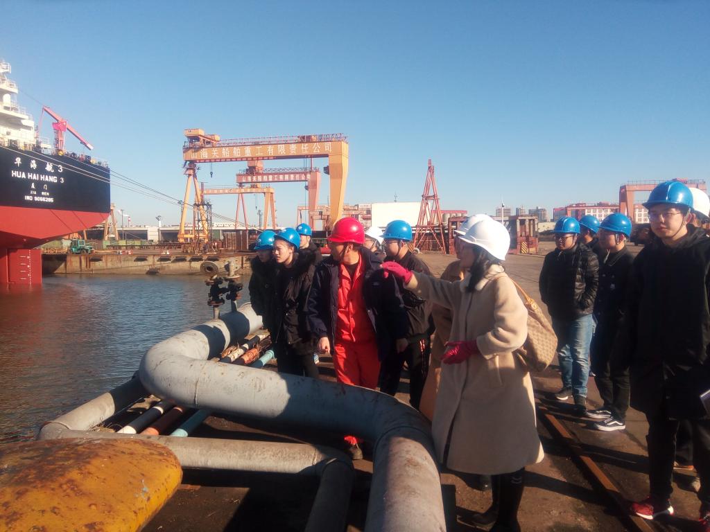 在参观船厂过程中,专业人员为大家详细介绍了公司的发展情况,之后再带领师生参观了公司修船部的生产车间及船舶修造船坞;在金海食品工业有限公司,技术人员对大豆产品的整个加工流程,尤其是油脂小包装自动灌装线和大型无人立体仓库等公司产品及相关生产流程进行了细致的讲解。