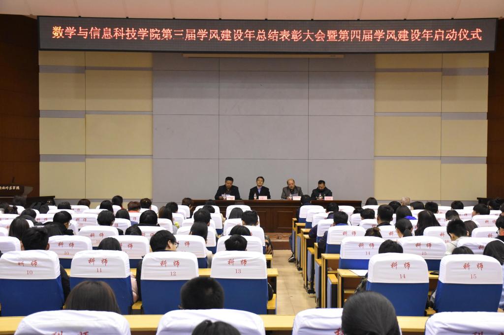 2019年3月28日,数学与信息科技学院在秦皇岛校区学术报告厅举办了第三届“学风建设年”总结表彰暨第四届“学风建设年”启动仪式。数信学院领导班子成员、教学部主任、专业带头人、学院全体辅导员(班主任)以及学生代表近400余人参与了此次会议。