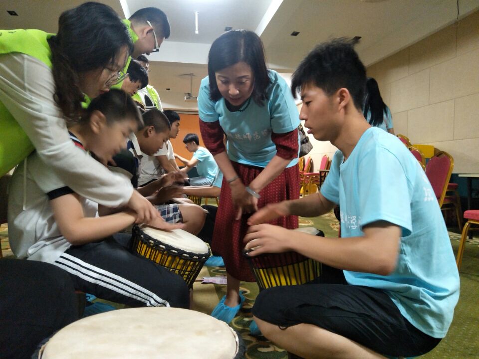 实践团成员来自艺术学院美术和音乐专业的大学生。实践队员们采用一对一的形式带领孩子们学习手鼓、军鼓、架子鼓等乐器及用手指作画等,运用语言沟通、眼神表情、肢体动作,从视觉、听觉、触觉、体验等方面与孩子们交流,使他们获得更多的感官刺激,提升表达能力和社会交往能力;努力用艺术去打开他们自闭的心理空间,丰富他们的内心世界。实践队员们根据每个孩子不同的情况,建立孩子的档案,以便于对每一个孩子的仔细了解,找到更适合他们的一项特长。让孩子们在“乐”中学,在“乐”中得。