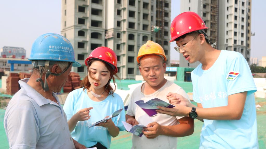 2019年7月16日,“践行新思想,法律润民心”法律援助实践团在九號别墅建筑工地开展服务农民工法律援助活动。本次活动实践团成员采用1+1的模式与施工队20余名工人针对劳动合同、工资报酬、社会保障等方面的法律问题进行面对面交流;根据农民工的务工特点,实践团成员又以零距离的方式为农民工详细解答工伤赔偿、如何追讨被拖欠的工资等问题;与此同时,还向农民工发放了实用易懂的法律援助手册200余份。