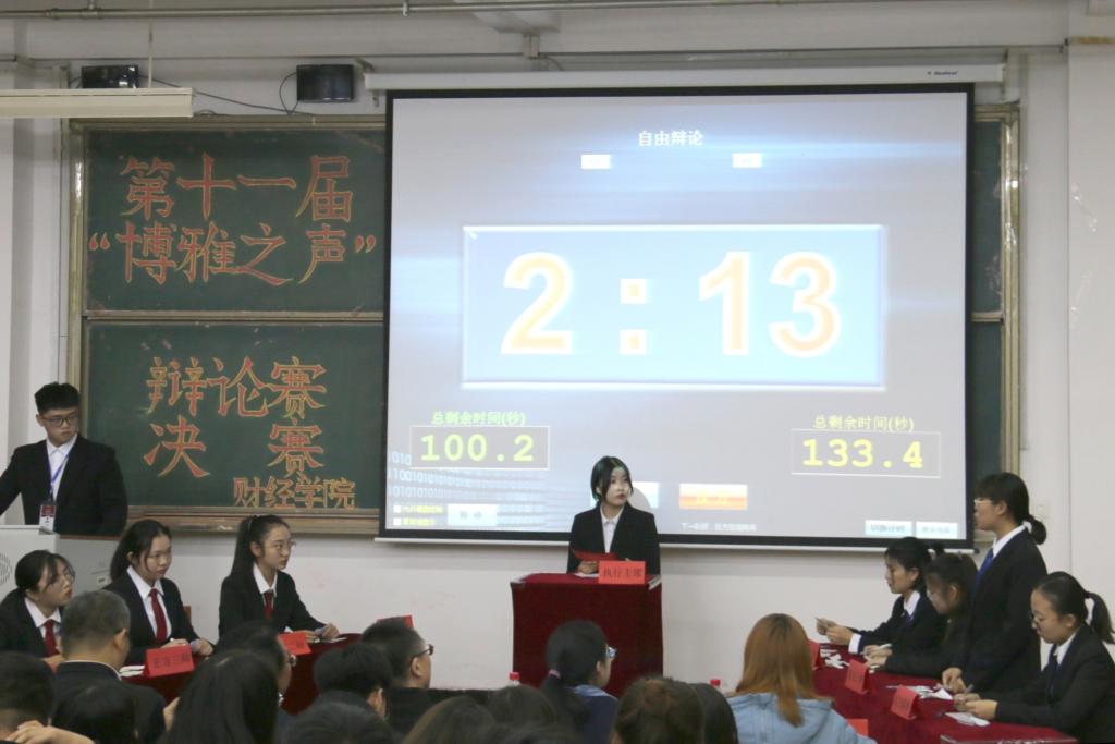 2019年11月15日,财经学院第十一届“博雅之声”辩论赛决赛如期举行。财经学院主管领导携辅导员同200余名同学一起现场观摩比赛。