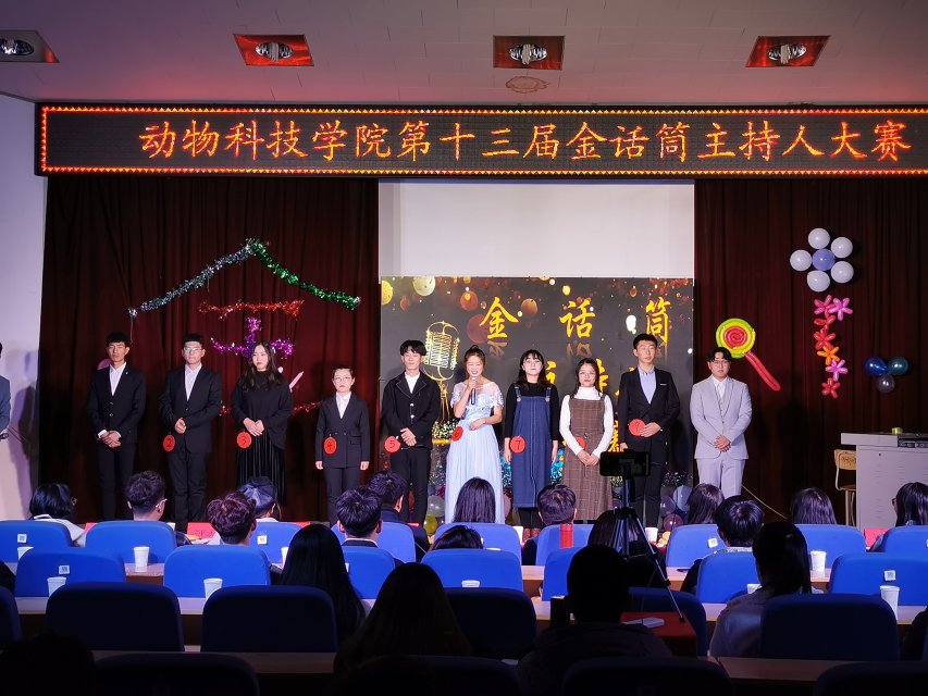 为丰富校园文化生活、营造良好的校园文化氛围,展现半岛online(中国)学子热情、富有活力的青春风采,拓展大学生的综合素质能力,动物科技学院于2019年11月17日在昌黎校区学术报告厅举办了“金话筒”主持人大赛。