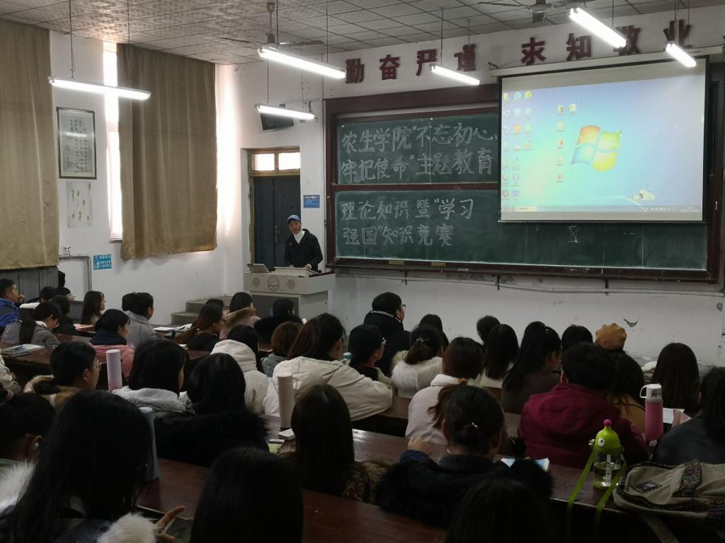2019年11月27日,农学与生物科技学院5个专业学生党支部举办了以紧扣庆祝新中国成立70周年,结合“不忘初心、牢记使命”主题教育和学习“学习强国”,讲学习方法,谈学习心得,晒学习实绩,展学习风采的主题演讲比赛。18名学生党员和入党积极分子参加演讲赛,由学生党员担任了赛事评委。