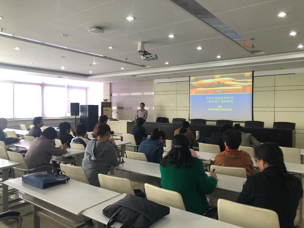 报告会上,刘勃教授用诙谐幽默的语言、生动详实的案例从《民法典》颁布的重大意义、《民法典》的特色和主要内容等三个方面进行了精彩解读。