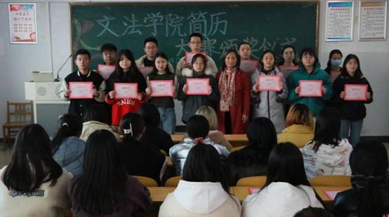 为培养大学生自我展现能力,提高求职竞争力,近日,文法学院举办了以“展自我风采,历职场未来”为主题的简历制作大赛,活动共收到来自文法学院大三、大四各专业学生的近50份精心制作的简历,参赛作品主题明确,构思新颖,排版合理,突出个性。经过认真评选,最终评出一等奖2名, 二等奖4名,三等奖7名,并于12月4日举办了简历大赛颁奖仪式。(编辑:孙艳敏 审核:赵辉)
