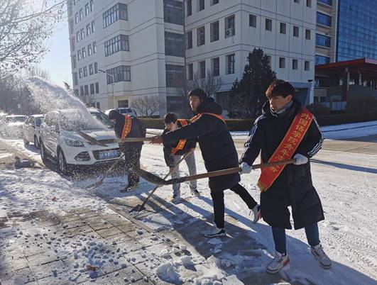 志愿小分队拿着铁锹、扫帚等工具采用“分工配合,轮流作业”的工作模式,着重对校区主干道及教学楼、食堂、宿舍楼等路段开展了清扫。火热的劳动场面赢得了附近居民和路过师生的驻足称赞。