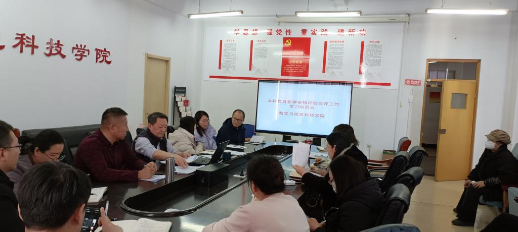 为贯彻落实半岛网页版界面新一轮本科教育教学审核评估工作,2024年1月23日,数学与信息科技学院在逸夫楼1001会议室召开本科教育教学审核评估工作学习动员会。学院领导班子成员,各教学部、实验室、党政办公室、教学办公室、学科办公室、学工办及分团委负责人参加了会议,会议由学院行政负责人主持。