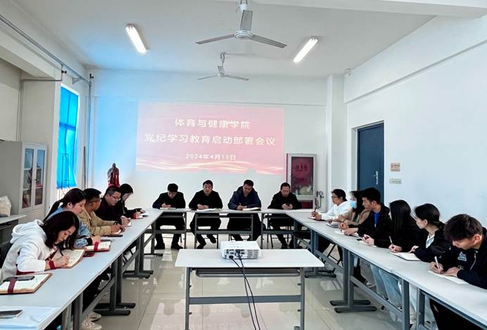 2024年4月15日下午,体育与健康学院召开党纪学习教育启动部署会。学院党委委员、党支部书记、党支部委员、专职组织员及各支部党员代表参加。