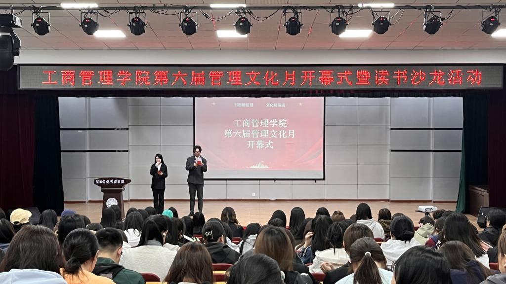 2024年4月28日,工商管理学院第六届管理文化月开幕式暨读书沙龙活动成功举办。学院负责同志、辅导员班主任及240余名学生参加了活动。