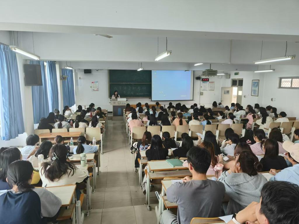 针对2022级和2023级学生,学院组织了两场线下学习和考研交流会,分别邀请了4名学习成绩优异且考取研究生的2024届毕业生交流分享,学工办工作人员到场参加。学工办工作人员分析了当前的考研形势,介绍了2024届毕业生考研情况。毕业生分别介绍了自己大学四年取得的成绩和荣誉、个人的学习经验和学习方法,同时结合考研,给出学习建议。