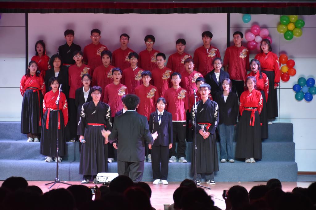 本次合唱比赛分为初赛和决赛两个阶段,经过初赛筛选,7个班级进入决赛。决赛现场,各参赛队伍身着统一的服装,精神饱满,台风稳健。同学们以饱满的热情和嘹亮的歌声演绎了校歌和经典红歌,从《没有共产党就没有新中国》到《团结就是力量》,从《万疆》到《国家》,一首首歌曲唱出了新生们对祖国的热爱与祝福,也展现了学院学子锐意进取、昂扬向上的精神面貌。合唱中还巧妙地融入了舞蹈、朗诵、弹奏等附加表演元素,为观众带来了一场视听盛宴,比赛现场气氛热烈,掌声雷动。经过激烈的角逐和评委们的认真评选,最终评选出了一等奖一个,二等奖两个,三等奖四个。