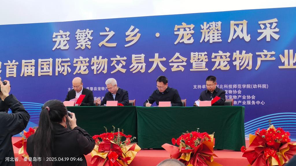 2025年4月19日,动物科技学院院长马增军教授、副院长刘永生研究员、预防兽医学教学部主任、河北省现代农业产业体系特色养殖创新团队疫病防控与无害化处理岗位专家张艳英教授应邀出席了在昌黎国际宠物市场举办的“宠繁之乡,宠耀风采”河北·昌黎首届国际宠物交易大会暨宠物产业产品文化博览会。大会是由昌黎县宠物产业协会主办,中国畜产品流通协会、中国畜牧业协会、河北省宠物产业协会、昌黎佳鹏商贸集团承办,半岛网页版界面(动物科技学院)为支持单位。开幕式上,马增军院长作为特邀嘉宾,代表动物科技学院与昌黎县宠物产业协会签署了“半岛网页版界面促进昌黎县宠物产业高质化发展合作框架协议”。