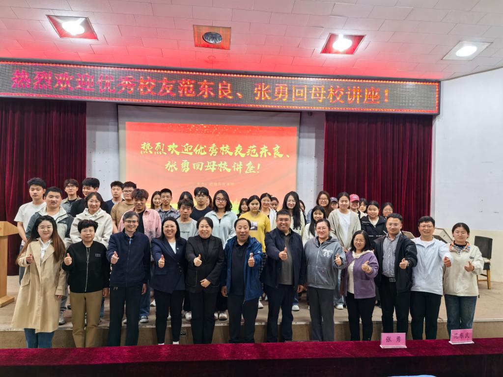 2025年4月28日,动物科技学院邀请两位杰出校友——石家庄飞龙饲料总裁范东良、北京中农同创集团行政运营总监张勇回校,围绕大学生成长、职业规划与成功人生塑造等话题同与会同学们进行深入交流。