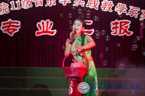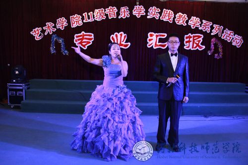 2013年11月21日晚,艺术学院11级音乐学声乐专业汇报演出在开发区校区举行。艺术学院党委书记王旭民、院长张海燕、副院长程学勇、副书记王志安及师生们一起观看了这次演出。音乐会以无伴奏合唱《半个月亮爬上来》拉开帷幕,接下来同学以独唱、重唱、对唱、表演唱的形式演唱了中外优秀声乐作品。同学们的演出赢得了在场师生的阵阵掌声。(编辑:孙艳敏 审稿:赵建平)