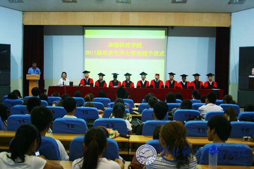 6月16日下午,动物科技学院2011届学士学位授予仪式在昌黎校区学术报告厅举行,动物科技学院学位评委委员会全体委员及210名毕业生出席了仪式。