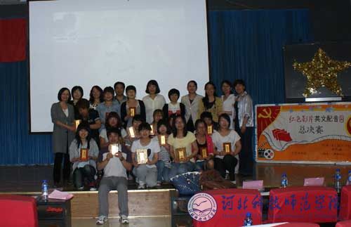 2011年5月31日晚上,外国语学院主办的2011年第一届红色影片英文配音大赛在开发区校区举行。外国语学院党委书记刘朝晖,外国语学院党委副书记、副院长宋文华,外国语学院副院长游建民,外国语学院副院长崔海英及四百余名学生观看了本次大赛。外国语学院马晓迎、爱云、丽敏、宋洁、荣萍、罗翠丽及王力老师担任本次比赛的评委。