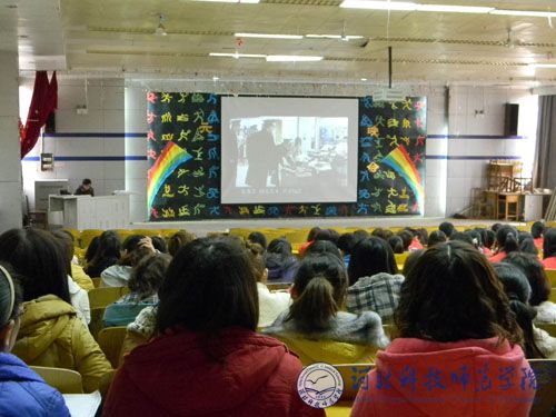 图为同学们在认真观看河北省“四个能力”建设视频宣传片
