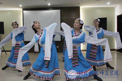 首先,毕丹霞主席致新年贺词,祝愿外国语学院在新的一年里取得更加辉煌的成绩。联欢会在院党委书记刘朝晖充满激情的致辞声中开始。教师们精心准备的节目一一上演,应用英语教研室的老师们带领在场的其他老师们做起了第八套广播体操,让大家重温了青春岁月;两个曾经的老兵游建民和吴玉新老师又重新“扛起了革命的枪”;办公室与学工办的老师们联手为大家献上了一出“杨白劳与黄世仁”;邵院长和崔院长为大家跳了一段精彩火爆的舞蹈——开门红;郭文颖、李爽等几位老师的舞蹈“吉祥谣”在联欢会上吹起了一股藏族风。全体教师在欢声笑语中迎接新的一年。