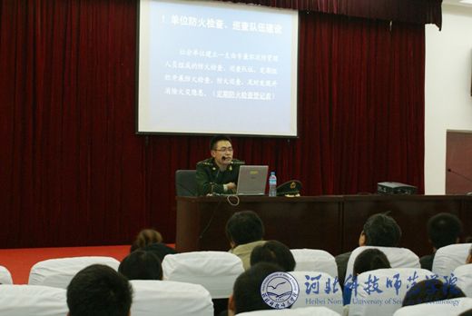 2010年10月29日下午,欧美学院在学术报告厅举办消防知识讲座。全体辅导员老师,实验室、教室管理员,图书馆、国际交流中心、治安办的相关人员及各专业学生干部近300人参加了讲座。校党委常委、欧美学院党委书记杨洪青参加了此次活动。 秦皇岛市海港区消防大队的刘兴华参谋结合实例做了有关消防安全知识及“消防四个能力”的专题讲座。讲座结束后,刘参谋又在西操场为与会人员讲解了消防灭火器的使用与操作,并分批次指导师生进行现场灭火演练。