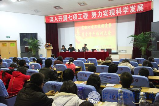 在随后的全院学生骨干培训会议上,冯瑞银书记对学院党委实施七项工程的文件进行了详细解读,明确指出实施七项工程的目的、任务和具体的实施方案。王庆祝副院长对全院学生骨干提出了具体要求。