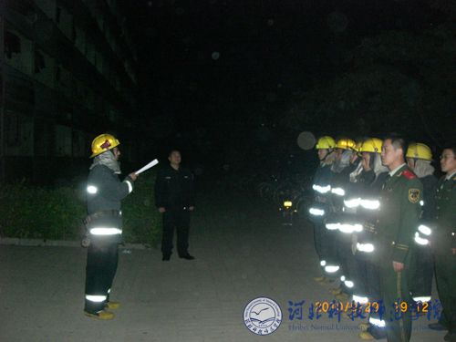 2010年9月29日晚上,消防演练在越千年学生公寓门前展开。按照演习预案,保卫处会同宿舍管理人员组织学生快速有序的疏散到安全位置。消防车呼啸开到现场,消防员跳下消防车,拖曳着消防水带冲入学生公寓,对假想火灾现场进行扑救。同时另一组消防员身背呼吸器对火灾现场被困人员进行搜救。整个演练过程紧张有序,有条不紊,历时一个小时圆满结束。通过演练,进一步增强了广大同学的消防安全意识,提高了对突发火灾事件的应变能力。
