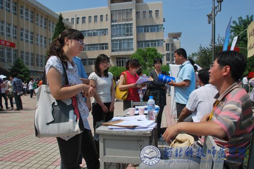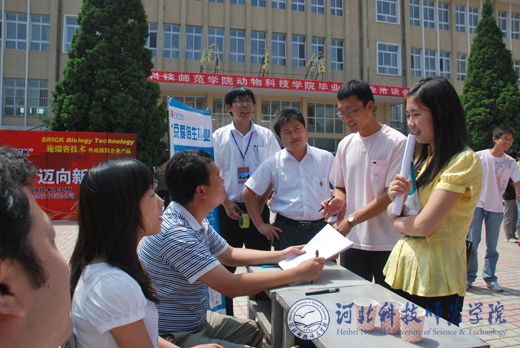 2010年6月1日至2日,动物科技学院在昌黎校区举办2010届毕业生就业洽谈会。北京、天津、辽宁、山东、河北等省市的30余家用人单位来到招聘会现场招聘。半岛网页版界面党委常委刘泽义、副校长孟令臣、昌黎校区办公室主任李彦生来到招聘会现场进行指导。吴建华、宋金昌、杨宗泽、王玉芬等动物科技学院领导与招生就业处相关教师及动物科技学院2010届全体毕业生和2011届将进行生产实习的大三学生共400余人到招聘会现场与用人单位进行洽谈。